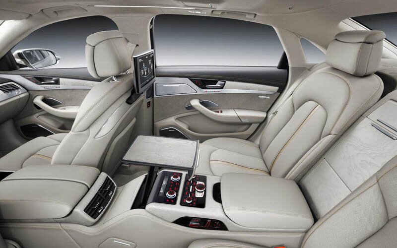 Изюминкой модели являются ее увеличенные размеры. Кузов Audi A8 Long стал длиннее на 130 мм. Столько же прибавила и колесная база. Соответственно они стали 5267 и 3122 мм. Высота немца увеличилась всего на 2 мм. Это было обусловлено желанием сохранить приземистый профиль, признак спортивного стиля.